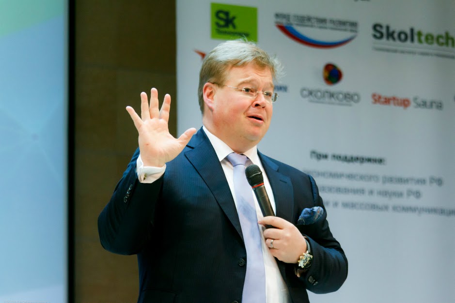 "в России новые предприниматели появляются очень быстро, мы не можем успеть всех послать в университеты. В Финляндии есть организация для обмена опытом между предпринимателями по части старт-апов - "Сауна старт-апов". Они неформально встречаются в сауне - потому что мы в Финляндии. И общаются межу собой, рассказывая о том, каким образом лучше внедрить ту или иную разработку в производство".